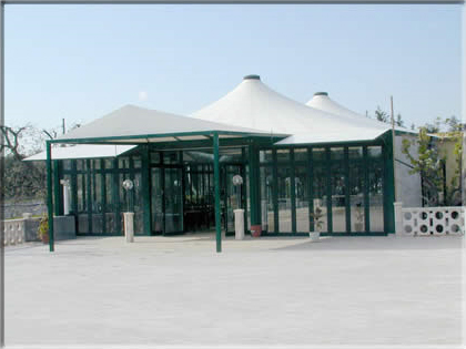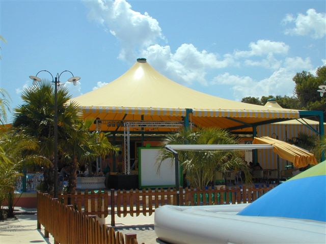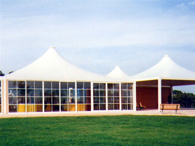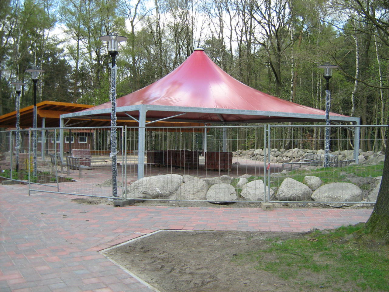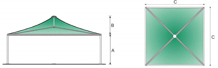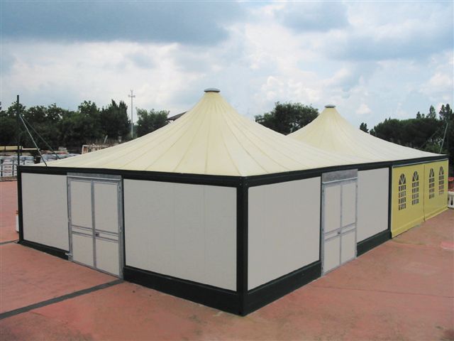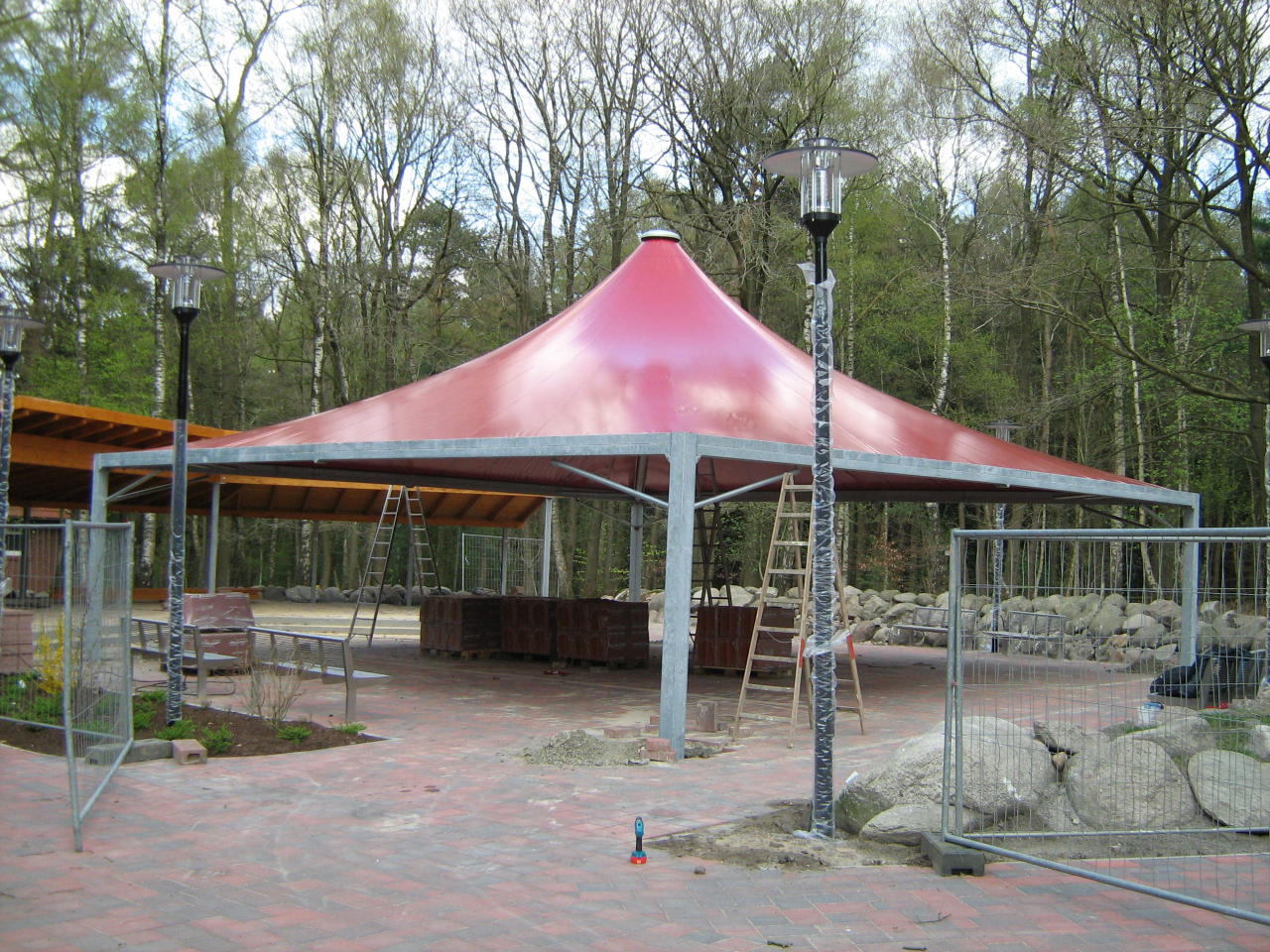 Diese feuerverzinkte, massive Stahlkonstruktion, ist für den ganzjährigen Einsatz gebaut. Das Wasser wird durch eine umlaufende Regenrinne, durch die Fußträger, zum Boden hin abgeleitet. Das Zelt ist für großflächige Überdachungen geeignet und bestens kombinierbar.