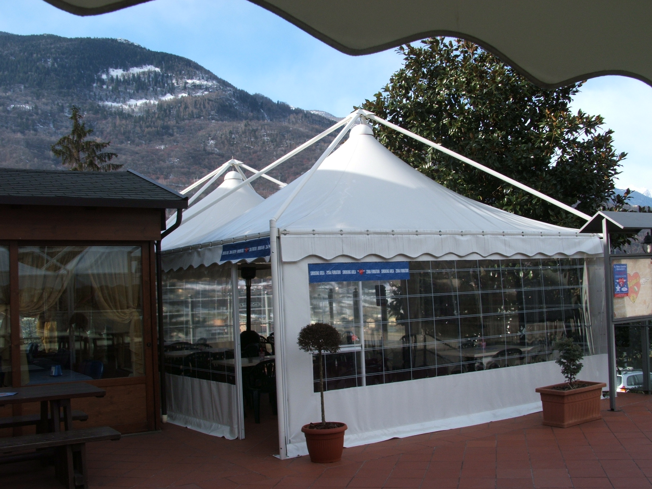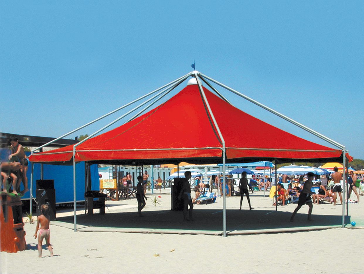 Das Pavillon besteht aus einem feuer-verzinkten Stahlgestänge. Sie können mit diesem Zelt ein Fläche von bis zu 96 qm in Kürze, ohne Mittelstütze, überdachen. Durch Seitenteile können Sie dieses Zelt schließen.