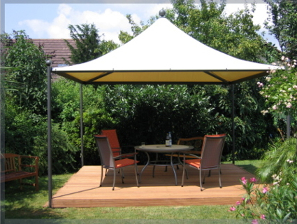 Das Modell Stilo überzeugt mit viel Eleganz und hoher Funktionalität. Das Zelt ist für den ganzhährigen Einsatz geeignet.